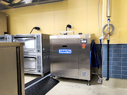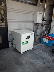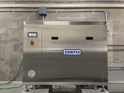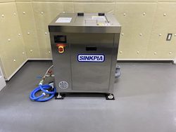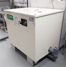 生ごみを順次分解処理していく業務用生ごみ処理機シンクピアを室内に設置しました。