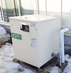 導入した生ごみ処理機は「ゴミサー」。減容率99.9%で、残渣がほとんど生じない生ごみ処理機です。