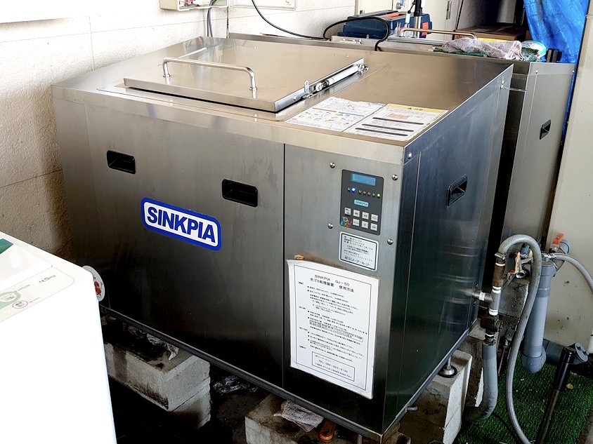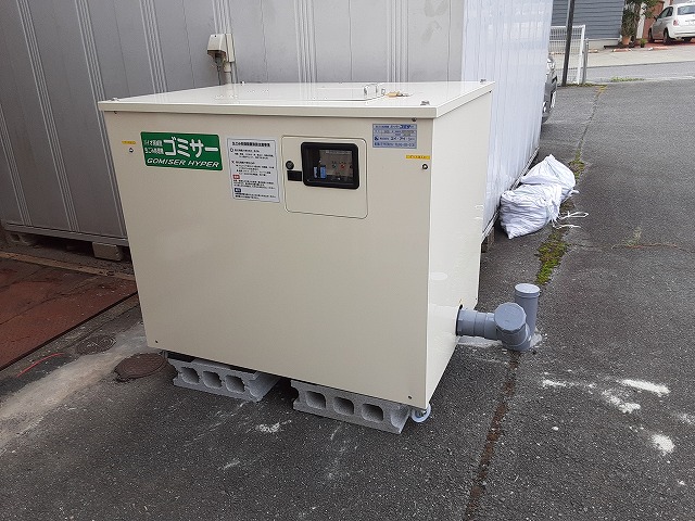 ステンレス製で屋外に設置できるタイプの業務用生ごみ処理機を導入しました。